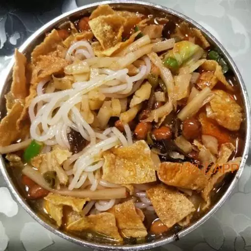 辅料:酸笋,酸菜,猪脊骨,生菜,炸花生米,萝卜干,黑木耳,草果,小茴香,香叶,葱花。
