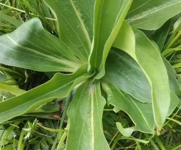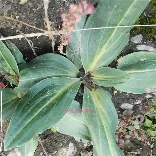 多年生草本,高30-40厘米,全株光滑无毛,基部被枯存的纤维状叶鞘包裹。须根多条,扭结或粘结成一个粗的根。枝少数丛生,粗壮,斜升,黄绿色或带紫红色,近圆形。莲座丛叶卵状椭圆形或狭椭圆形。长12-20厘米,宽4-6.5厘米,先端钝或急尖,基部渐尖,边缘微祖糙,叶脉5-7条,在两面均明显,并在下面突起,叶柄宽,长5-8厘米,包被于枯存的纤维状叶鞘中;茎生叶卵状椭圆形至卵状披针形,长6-16厘米,宽3-5厘米,先端钝至急尖,基部钝,边缘微粗糙,叶脉3-5条,在两面均明显,并在下面突起,叶柄宽,近无柄至长达3厘米,愈向茎上部叶愈大,柄愈短,至最上部叶密集呈苞叶状包被花序。