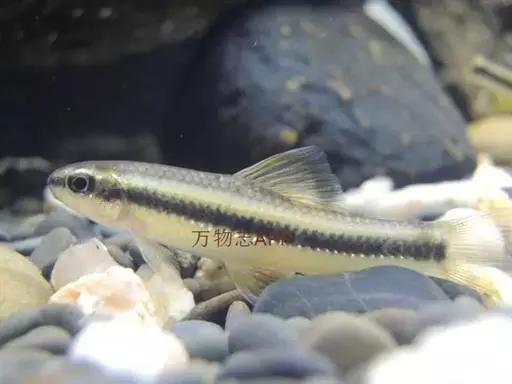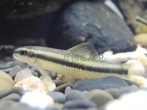 体灰色微带黑。体侧中轴自吻部至尾鳍基有1黑条纹,其宽度相当于2个鳞片,与眼径约等长,此纹后半部色较深。颊部、额部均呈桔红色。背鳍灰色,其他各鳍淡桔黄色,鳍条上常带有细小黑色点。生殖期间雄鱼体色较鲜艳,吻部具有较大的珠星;雌鱼产卵管延长,最长的约与头长相等。