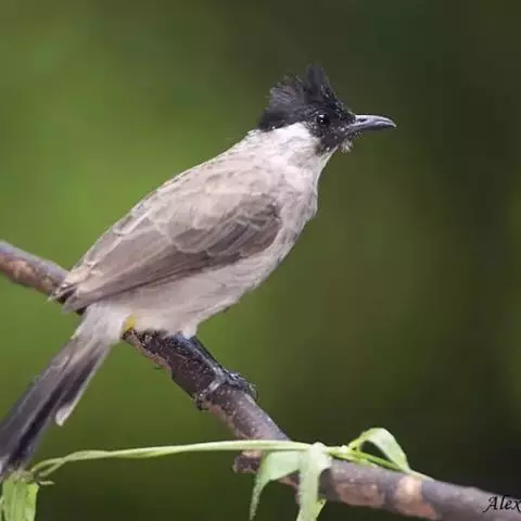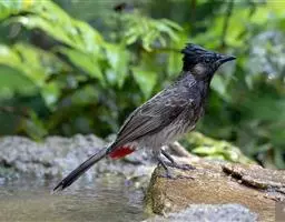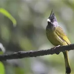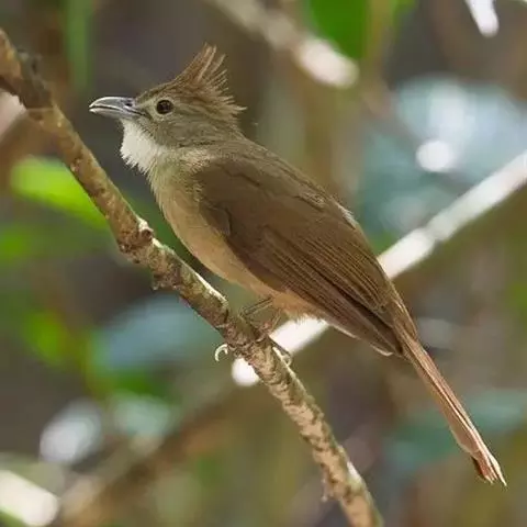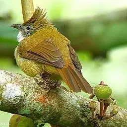 白喉冠鹎:体长20-25厘米。头顶红褐色,有长而细的羽冠、红褐色,头侧灰色。上体橄榄绿黄色,…
