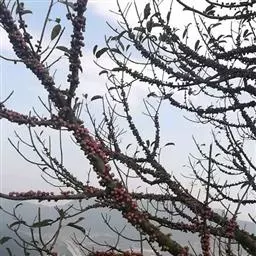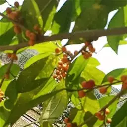 花后结出很多圆形的果,幼果黄绿色,熟后橘红色。