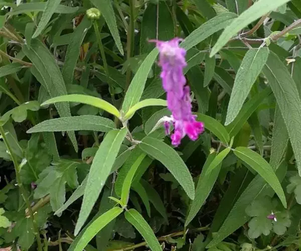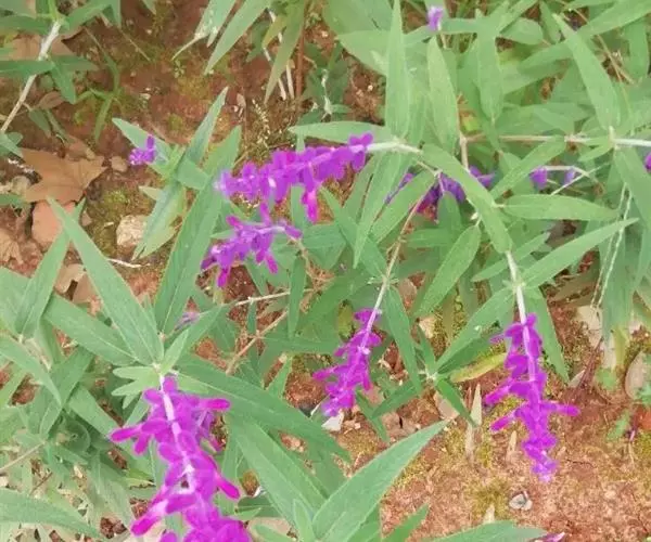 多年生草本植物,株高约30~70厘米。茎直立多分枝,茎基部稍木质化。叶片久状披针形,对生,上具绒毛,有香气。轮伞花序,顶生,花紫色,具绒毛,白至紫色。【花果期】花期秋季,果期冬季