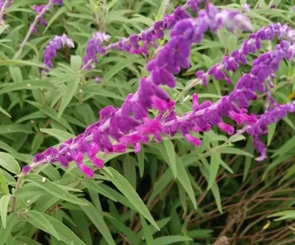 墨西哥鼠尾草,也称为紫绒鼠尾草,属于唇形科植物的一种。为多年生草本,叶对生,轮伞花序,顶生,花紫色。原产于中南美洲。