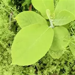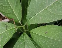 基生叶数个,卵状心形,长4~10cm,宽2.5~6cm,两面有糙伏毛和短伏毛,先端短渐尖,叶柄长4~7cm,茎生叶等距排列,较小,长1~2cm,排列稀疏。