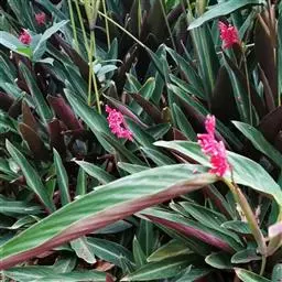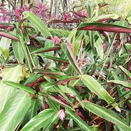 水竹芋为竹芋科多年生草本植物,植株高可达2米。叶互生,叶片卵形,叶色青绿,叶缘紫色,上被白粉,叶片…