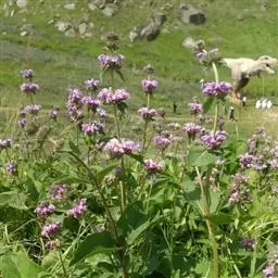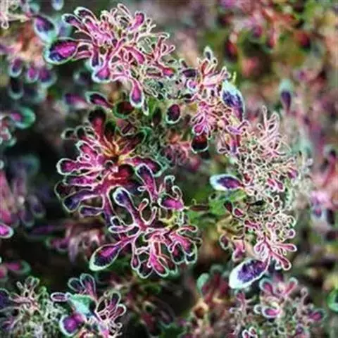 牛至 牛至为一多型种,在欧洲不少作者常分成许多亚种及变种。就中国各地所产而言,变化亦相当大,新疆所产的叶较大,花序密集,小苞片倒卵形至近卵形,甘肃所产的小苞片极宽大,果时近于圆形,深红色,福建所产的花萼近于无毛,湖南部分标本花序明显呈角柱形,台湾与大陆上述以外的地区所产的小苞片倒卵形至长圆状倒圆形以及花萼多毛这两点上是一致的,但常发现有雌花两性花异株现象。