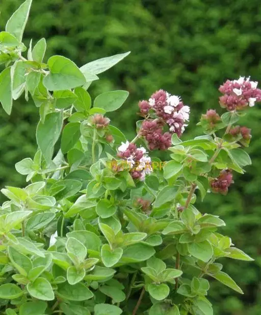 牛至(学名:Origanum vulgare L.)是唇形科,牛至属多年生半灌木或草本植物,芳香;根茎斜生,木质。茎高可达60厘米,四稜形,近基部常无叶。叶具柄,背面近圆形,被柔毛,叶片卵圆形或长圆状卵圆形,先端钝或稍钝,上面亮绿色,常带紫晕,下面淡绿色,苞叶大多无柄,花序呈伞房状圆锥花序,多花密集,小穗状花序组成;苞片锐尖,绿色或带紫晕,花萼钟状,花冠紫红、淡红至白色,管状钟形,两性花冠,冠檐明显二唇形,花丝丝状,扁平,无毛,花药卵圆形,花柱略超出雄蕊,裂片钻形。小坚果卵圆形,7-9月开花,10-12月结果。