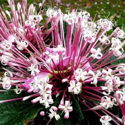 花序呈伞房状圆锥花序,开张,多花密集,由多数长圆状在果时多少 牛至 伸长的小穗状花序所组成;苞片长圆状倒卵形至倒卵形或倒披针形,锐尖,绿色或带紫晕,长约5毫米,具平行脉,全缘。花萼钟状,连齿长3毫米,外面被小硬毛或近无毛,内面在喉部有白色柔毛环,13脉,多少显著,萼齿5,三角形,等大,长0.5毫米。花冠紫红、淡红至白色,管状钟形,长7毫米,两性花冠筒长5毫米,显著超出花萼,而雌性花冠筒短于花萼,长约3毫米,外面疏被短柔毛,内面在喉部被疏短柔毛,冠檐明显二唇形,上唇直立,卵圆形,长1.5毫米,先端2浅裂,下唇开张,长2毫米,3裂,中裂片较大,侧裂片较小,均长圆状卵圆形。雄蕊4,在两性花中,后对短于上唇,前对略伸出花冠,在雌性花中,前后对近相等,内藏,花丝丝状,扁平,无毛,花药卵圆形,2室,两性花由三角状楔形的药隔分隔,室叉开,而雌性花中药隔退化雄蕊的药室近于平行。花盘平顶。花柱略超出雄蕊,先端不相等2浅裂,裂片钻形。