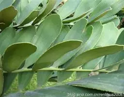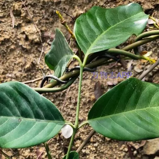 买麻藤 大藤本,高达10米以上,小枝圆或扁圆,光滑,稀具细纵皱纹。叶形大小多变,通常呈矩圆形,稀矩圆状披针形或椭圆形,革质或半革质,长10-25厘米,宽4-11厘米,先端具短钝尖头,基部圆或宽楔形,侧脉8-13对,叶柄长8-15毫米。