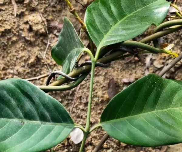 买麻藤 进行嫩枝扦插时,在春末至早秋植株生长旺盛时,选用当年生粗壮枝条作为插穗。把枝条剪下后,选取壮实的部位,剪成5~15公分长的一段,每段要带3个以上的叶节。剪取插穗时需要注意的是,上面的剪口在最上一个叶节的上方大约1公分处平剪,下面的剪口在最下面的叶节下方大约为0.5公分处斜剪,上下剪口都要平整(刀要锋利)。