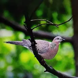 棕斑鸠,是鸽形目鸠鸽科斑鸠属鸟类。整个头和颈淡粉红色,头顶和前额较暗,颊、喉较淡,…