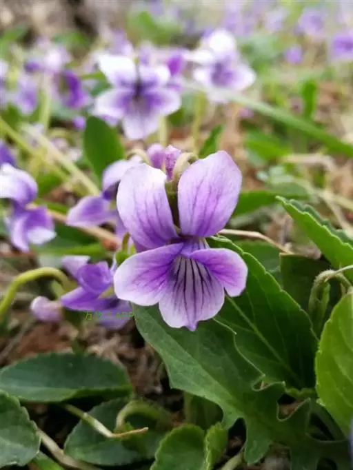 紫花地丁(学名:Viola philippica),别名野堇菜、光瓣堇菜等。多年生草本,属侧膜胎座目,堇菜科多年生草本,无地上茎,高4~14cm,叶片下部呈三角状卵形或狭卵形,上部者较长,呈长圆形、狭卵状披针形或长圆状卵形,花中等大,紫堇色或淡紫色,稀呈白色,喉部色较淡并带有紫色条纹;蒴果长圆形,长5~12mm,种子卵球形,长1.8mm,淡黄色。花果期4月中下旬至9月。