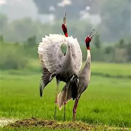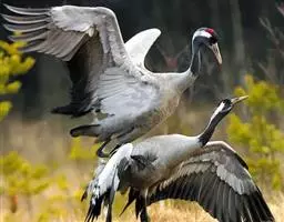 繁殖期雄鸟间常为保护领地而格斗;格斗时双方互相逼近,先是高耸着羽冠、嘴尽量向下伸地对峙着,突然间互相咬着嘴尖,拔河似的拉成直线以保持一定的安全距离,接着二者相连着一同拍翼坠下脱开,在地上继续互相冲击,直至一方退让为止。