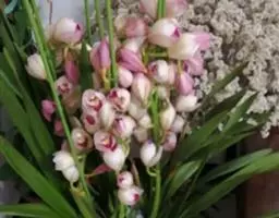 苞舌兰:假鳞茎扁球形,通常粗1-2.5厘米,被革质鳞片状鞘,顶生1-3枚叶。叶带状或狭披针形,…