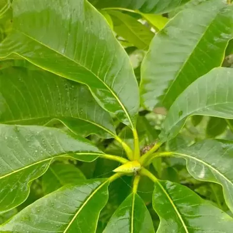 蛋黄果 Baehni),山榄科桃榄属小乔木。枝被褐色,短绒毛;叶窄椭圆形,先端渐尖;花生于叶腋,…