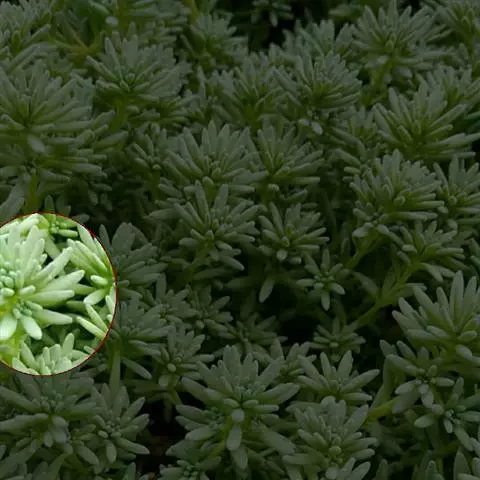 薄雪万年草别名矶小松,景天科景天属多年生草本植物,其细小的蓝绿色棒状叶片环绕生长于茎端,…