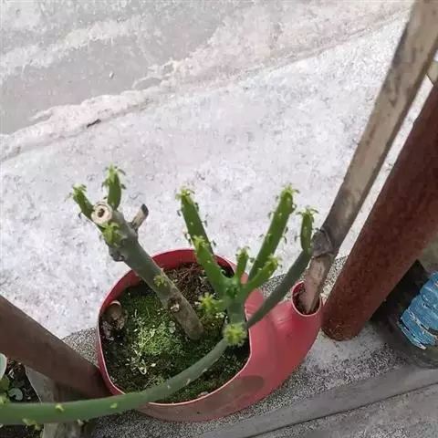 虎刺梅:别称铁海棠,是蔓生灌木植物。茎多分枝,长60-100厘米,直径5-10毫米,具纵棱,密生硬…