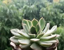 大和锦是景天科拟石莲花属的多肉植物。肉质叶排成紧密的莲座状,广卵形至散三角卵形,背面突起呈龙骨状,…