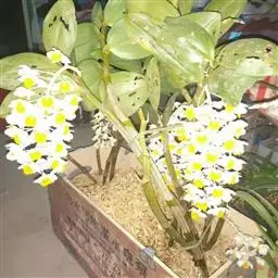 球花石斛,是兰科石斛属的多年生附生草本。茎直立或斜立,圆柱形,粗壮,基部收狭为细圆柱形,不分枝,…
