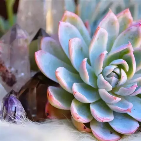 蓝石莲是景天科、拟石莲花属的多肉植物。茎部粗壮,成熟植株茎部木质化。叶片莲座型密集排列,株径不会很大,…