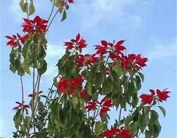 一品红,大戟科大戟属直立灌木植物。一品红植株各部分具白色乳汁;茎光滑,有分枝,嫩枝绿色,草质,…
