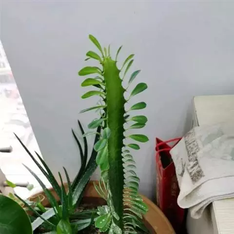 霸王鞭,是大戟科大戟属的多年生肉质灌木,全株含白色乳汁;茎直立,茎基部圆柱形,上部4~5纵棱,…