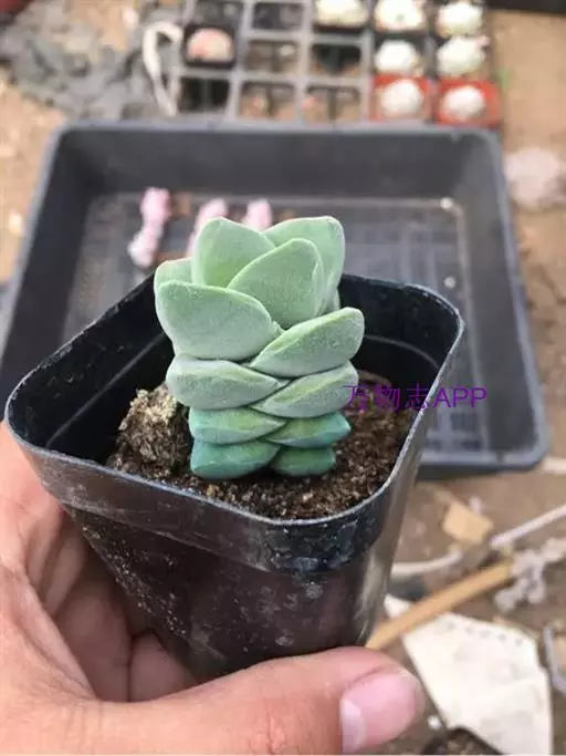 纪之川继承了父本神刀淡淡的灰绿色调和叶片表面的细绒毛,而叶片紧密的排列方式和敦厚圆润的形状则与母本稚儿姿相似,是兼具父母本优良性状的杂交种。