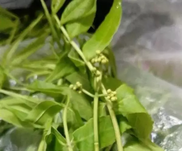 花序顶生;萼片细小,阔卵形,长约1毫米;花瓣紫绿色,长3-4毫米;雄花的雄蕊比花瓣长,退化雌蕊短小。