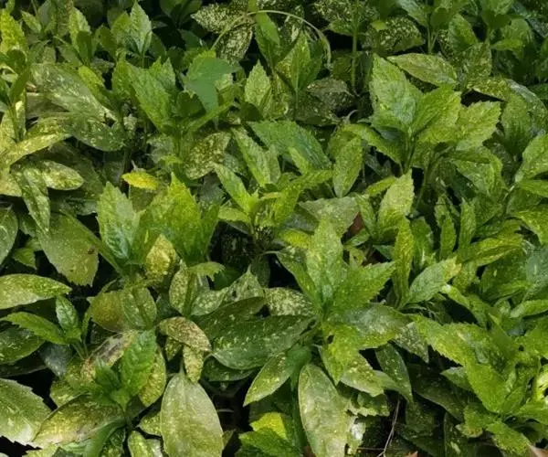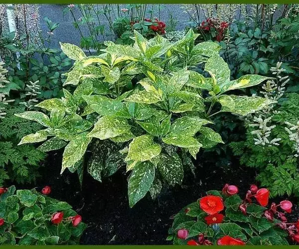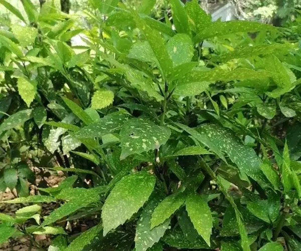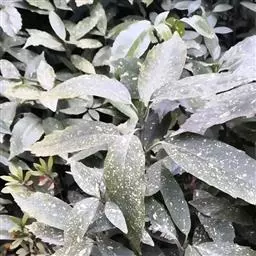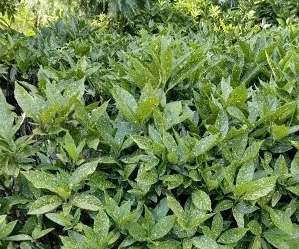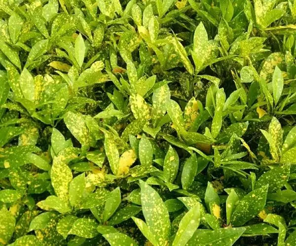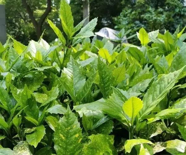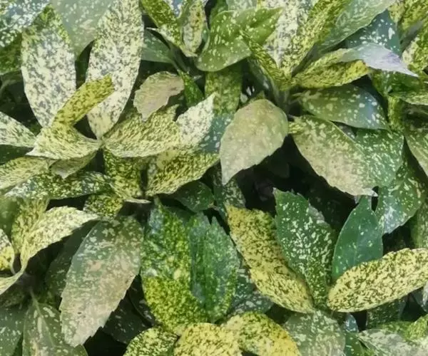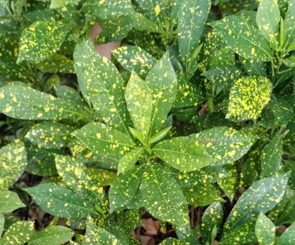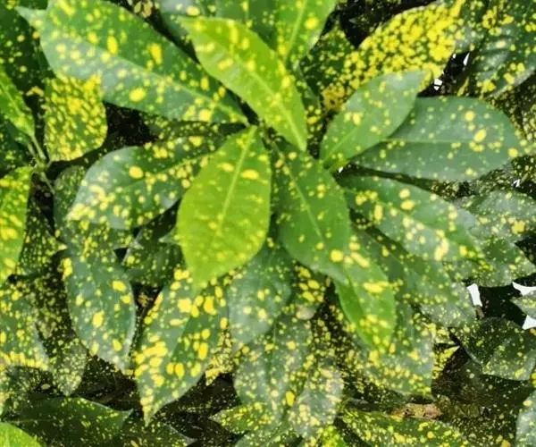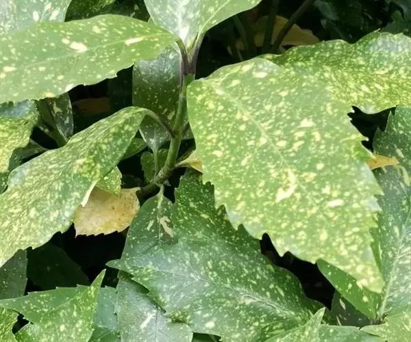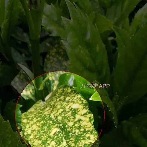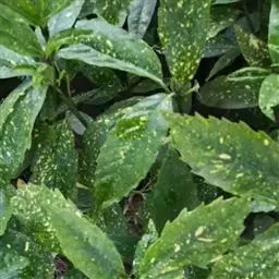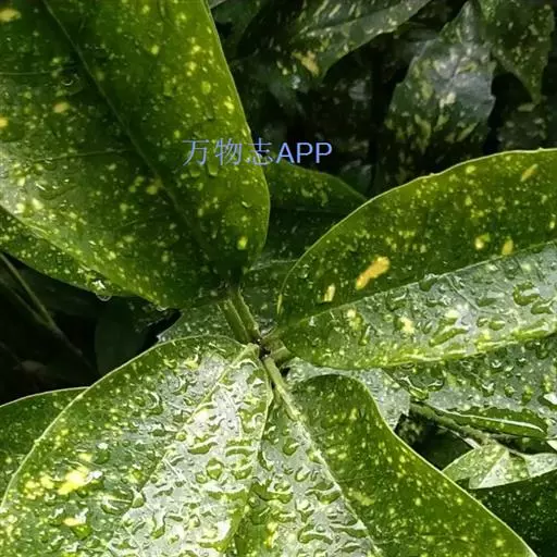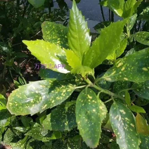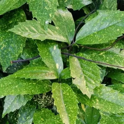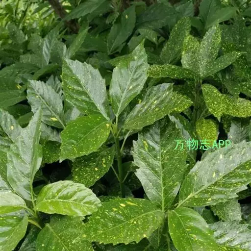 花叶青木(变种)(华北经济植物志要)洒金叶珊瑚(江苏),金沙树(日本)本变种的叶片有大小不等的黄色或淡黄色斑点,植株常高1-1.5米。易与原变种区别。