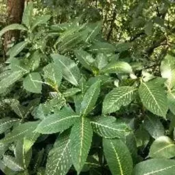 花叶青木(学名:)是山茱萸科,桃叶珊瑚属青木的变种,常绿灌木,高可达3米;小枝对生。叶革质,叶片卵状椭圆形或长圆状椭圆形,叶面光亮,具黄色斑纹,叶柄腹部具沟,无毛。圆锥花序顶生;雌花序为短圆锥花序;花瓣紫红色或暗紫色,雄花花萼杯状,雌花子房疏被柔毛,柱头偏斜;浆果长卵圆形,成熟时暗紫色或黑色,花期3-4月;果期至翌年4月。