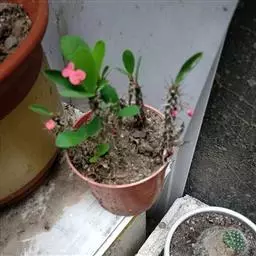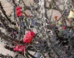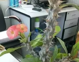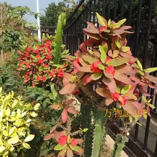 虎刺梅:别称铁海棠,是蔓生灌木植物。茎多分枝,长60-100厘米,直径5-10毫米,具纵棱,密生硬…