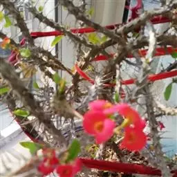铁海棠为大戟科大戟属蔓生灌木植物;茎多分枝,具纵棱,呈旋转状;叶互生,…