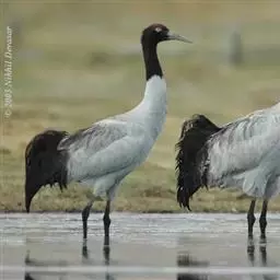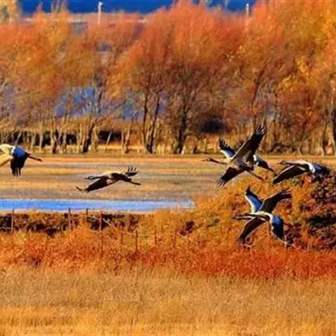 黑颈鹤:是鹤科、鹤属的大型涉禽,体长110-120厘米,体重4-6千克。颈、脚甚长,通体羽毛灰白色,…