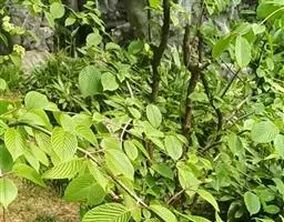 叶纸质,椭圆形或菱状倒卵形,长4-8厘米,顶端锐尖,基部楔形至宽楔形,边缘基部除外具三角形锯齿,幼时上面散生细短毛,下面脉上被微毛,后除脉腋集聚簇状柔毛外均无毛,侧脉5-7对,直达齿端,连同中脉上面凹陷,下面凸起,小脉不明显或两面略凹陷;叶柄长(1-)1.5-3厘米,幼时上面边缘被纤毛。