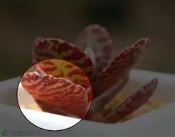 趣蝶莲株形奇特,对称的叶片宽大肥厚,富有光泽,叶缘处的红色鲜艳醒目,匍匐枝顶部的小植株更如翩翩起舞的蝴蝶。
