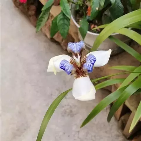 双色野鸢尾为多年生草本植物,叶子呈剑状淡绿色。…