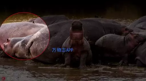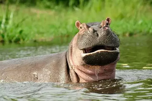 河马(学名:Hippopotamus amphibius)是淡水物种中的最大型杂食性哺乳类动物,体型巨大,体长4米,肩高1.5米,体重约3吨,躯体粗圆,四肢短,脚有4趾,头硕大,眼、耳较小,嘴特别大,尾较小,下犬齿巨大,长50-60厘米,重2.5千克,皮较厚,约40-50毫米,除吻部、尾、耳有稀疏的毛外,全身皮肤裸露,呈紫褐色.胃三室,不反刍。