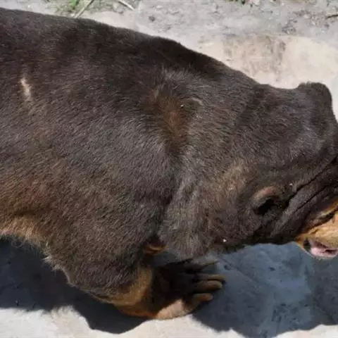 马来熊,是食肉目熊科马来熊属哺乳动物。体胖颈短,眼睛和耳朵小;头部短圆;全身乌黑光滑;鼻唇周为棕黄色,…