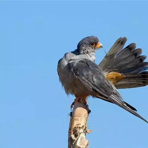 红脚隼为隼形目,隼科、隼属动物,又叫青燕子、青鹰、红腿鹞子、蚂蚱鹰等,是小型猛禽。…