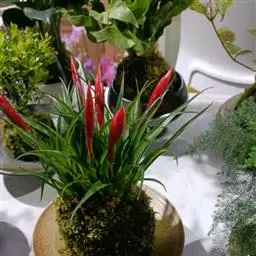 姬凤梨是凤梨科姬凤梨属的多年生常绿草本植物,姬凤梨株形小巧玲珑,叶态雅致;花色鲜艳,丛生莲座状的叶片,…