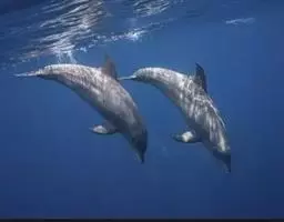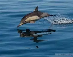 真海豚,身体细而流线型。体色十分复杂而独特,通常十字交叉型,黄褐色在前灰色在后,背面黑色向下延伸,…