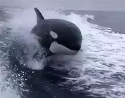 虎鲸,是鲸偶蹄目海豚科虎鲸属哺乳动物。成体体重6600千克,平均体长6-9米;头部略圆,…