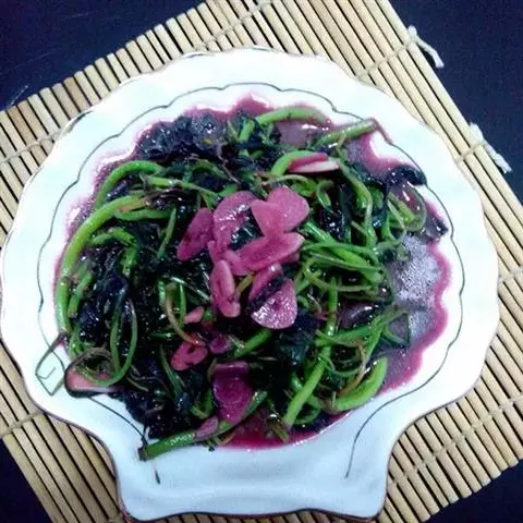苋科草本植物苋的茎叶。叶有绿、红、暗紫等色,以色红者较好,称为红苋、赤苋。中国各地均有栽培,春、夏季采收,去根,洗净用。 苋菜