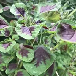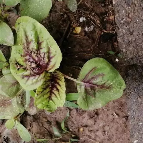 叶片边缘绿色,叶脉附近紫红色,耐热性较差, 质地软。有上海的尖叶红米苋及广州的尖叶花红等。