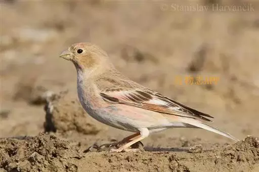 雌鸟和雌鸟冬羽相似。额至头顶、后颈、眼先、耳羽和头侧沙棕色具棕褐色羽干纹,其余上体沙褐色。背、肩具不甚显著的褐色羽干纹,尾上覆羽淡沙褐色沾玫瑰红色,翅上无玫瑰红色,仅大覆羽羽缘棕红色。下体颏至上腹和两胁淡棕色微沾褐色并缀有玫瑰红色,其余同雄鸟。