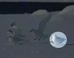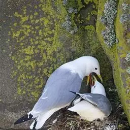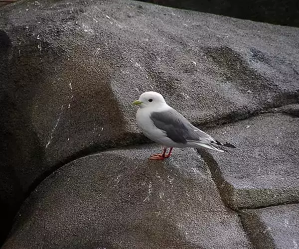 红腿三趾鸥又名三趾鸥(Rissa tridactyla)是生活在北冰洋和北大西洋的海鸟,它们有黄黄的嘴,银色的双翅衬着雪白的胸脯。