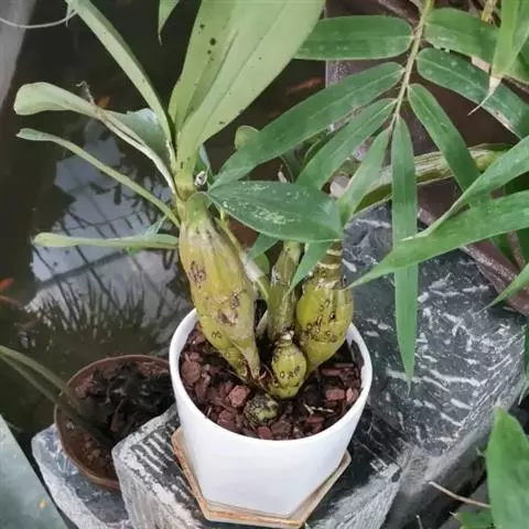 通常选用四壁多孔的塑料或陶瓷花盆,用碳根、泥炭藓、树皮块、木炭块等作盆栽材料。根据兰苗的大小,选择不同规格的花盆,但不宜用大盆栽小苗口上述栽好材料在使用前必需在清水中浸泡1天以上备用。盆底要多垫大瓦片或碎砖块,深度至盆底约1/3处,然后将兰苗放于盆中央,并在一旁插一细竹竿以固定兰苗,再填入其他栽培材料,注意根与根之间用材料隔开。