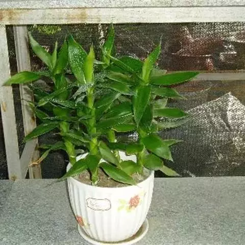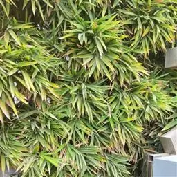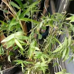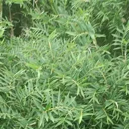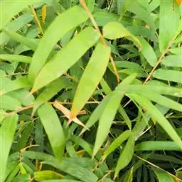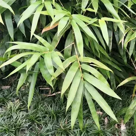 凤尾竹 Raeusch. ex Schult. ’Fernleaf’ R. A. Young)是禾本科,簕竹属孝顺竹的变种。植株较高大,杆高可达6米,竿中空,小枝稍下弯,下部挺直,绿色;竿壁稍薄;节处稍隆起,无毛;叶鞘无毛,纵肋稍隆起,背部具脊;叶耳肾形,边缘具波曲状细长繸毛;叶舌圆拱形,叶片线形,上表面无毛,下表面粉绿而密被短柔毛,小穗含小花,中间小花为两性;外稃两侧稍不对称,长圆状披针形,先端急尖;内稃线形,脊上被短纤毛,花药紫色,子房卵球形,羽毛状。成熟颖果未见。原产中国,华东、华南、西南以至台湾、香港均有栽培。凤尾竹喜温暖、湿润和阳光充足的环境,耐寒。宜土层深厚、肥沃、疏松的微酸性壤土。该种观赏价值较高,宜作庭院丛栽,也可作盆景植物。全草或根入药,味淡、微苦,性寒,有清热利湿、凉血止血、消肿解毒功效,可治痢疾、泄泻等多种病症。凤尾