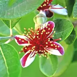 菲油果是桃金娘科、野凤榴属植物。常绿小乔木,高约5米;枝圆柱形,灰褐色。叶片革质,…