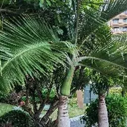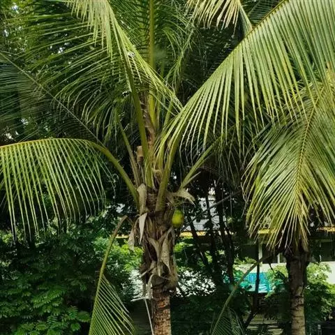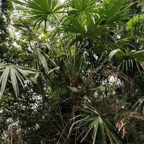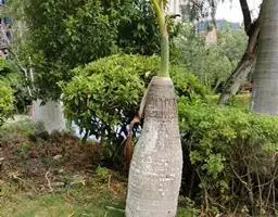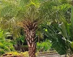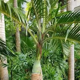 布迪椰子 布迪椰子单干型,高达7-8米,直径40-50厘米,老叶基残存包裹于树干。